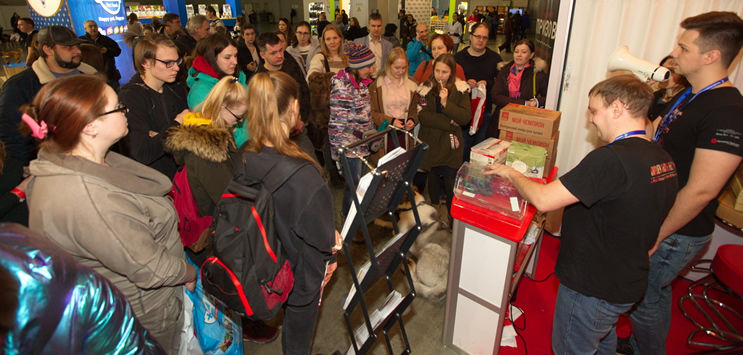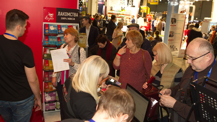 Народу пришло больше, чем в прошлом году, во всяком случае, около стенда “Компании АКАНА” было очень оживлённо. Вся наша команда: Степан Петров, Света Васильева, Ефим Шадрин, Галя Кириллова, Ира Кондрашова — два дня консультировала посетителей стенда, рассказывала об особенностях кормов и индивидуально подбирала лучшие варианты для четвероногих посетителей. В этот раз мы не стали ограничиваться подарками за покупку кормов на стенде и решили провести розыгрыш призов. Было интересно и весело.